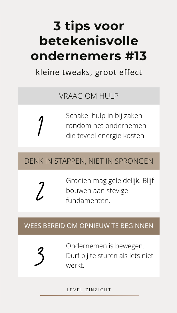 Op deze pagina vind je praktische en bruikbare tips voor ondernemers. Geen ingewikkelde theorie, maar inzichten die je direct kunt toepassen in jouw betekenisvolle bedrijf. Kleine handvatten, slimme strategieën en soms net dat zetje dat je nodig hebt.